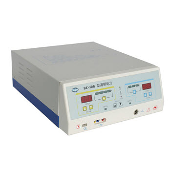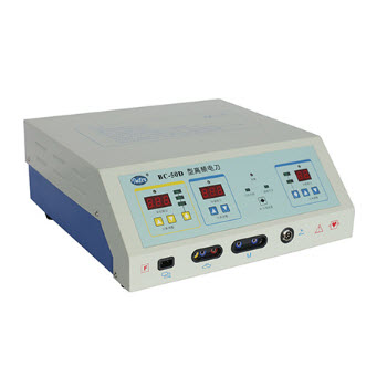 BC-50E高頻電刀產品特點:智能化主機,具有純切'混切1、混切2、單極接觸凝等功能;既可手控又可腳控;輸出功 率數字化顯示;電腦自動判斷設備及操作故障,數碼顯示故障類型,聲光報警。設有中性電...