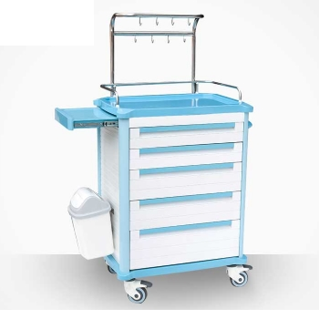 ABS發藥車 FG-B-04產品介紹:尺寸:658*475*1045MM1.包含6個小抽屜和3個大抽屜,多數量的藥盒供不同的儲存需要;2.4個直徑125的腳輪,兩個帶鎖,兩個不帶鎖;3.配有一個垃圾桶...