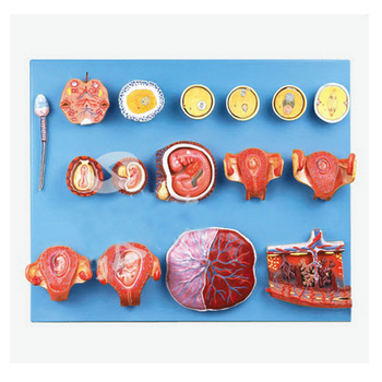 受精與早期胚胎發育過程模型 GD/A42002功能介紹■該模型由精子、卵巢、卵子、受精卵發育過程、胚盤、2-9周胚胎以及3月胎兒、胎盤等16個部件組成,并顯示從卵細胞發育到3月大小胎兒形成的人類早期胚...